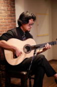 盛植俊介(フラメンコギター) パコ・デ・ルシア、ビセンテ・アミーゴを聴き衝撃を受け、フラメンコギターを始める。様々なアーティストに師事し、スペインに三度の留学を果たす。ロマン・ビセンティ、マヌエル・バレンシアに近年師事した。フラメンコを様々な視点で勉強、追求し、独自のフラメンコスタイルを磨きつつ、後進の指導も開始。NHK衛星第2「BSふれあいホール」舞踊家アントニオ・アロンソの伴奏で出演。テレビ朝日「遺留捜査2」第3話出演。テレビ東京「出没!アド街ック天国」月島特集時出演。2017年Benito Garciaスペイン・コルドバ公演に出演。19年ノベンバーイレブンスにて自身のギターリサイタルを開催。E’s CAFE(多摩センター)での「NOCHE FLAMENCA 〜フラメンコの夕べ〜」レギュラー出演。多摩平フラメンコギター教室講師。 |